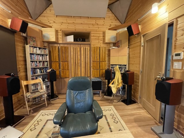 フロアレベルの7ch 8スピーカーは全てB&W 805D3、サブウーファー3台(Left front/ Right front/ Rear)はB&W DB4S。Atomos用のトップスピーカーKlipsch系とAuro-3D用のハイトスピーカーB&W系をスイッチで切り替えられるようになっている。