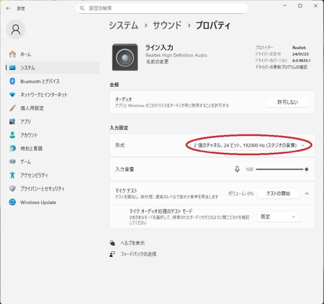 アプリとの関係は不明ですが、取り敢えず192KHz/24bitに変更しました。