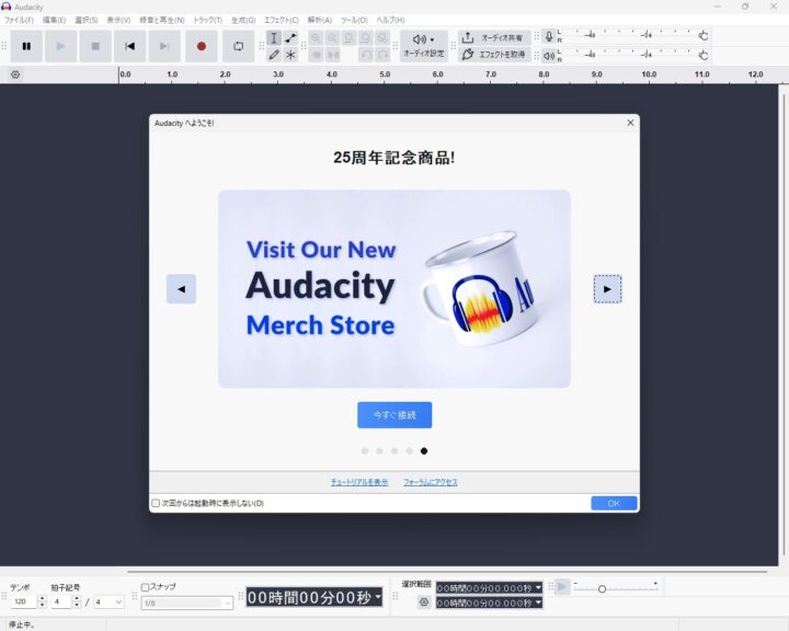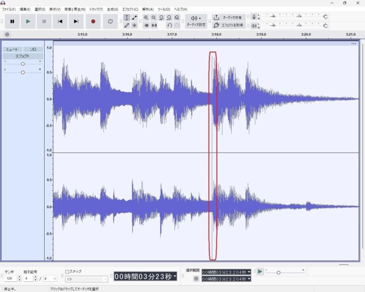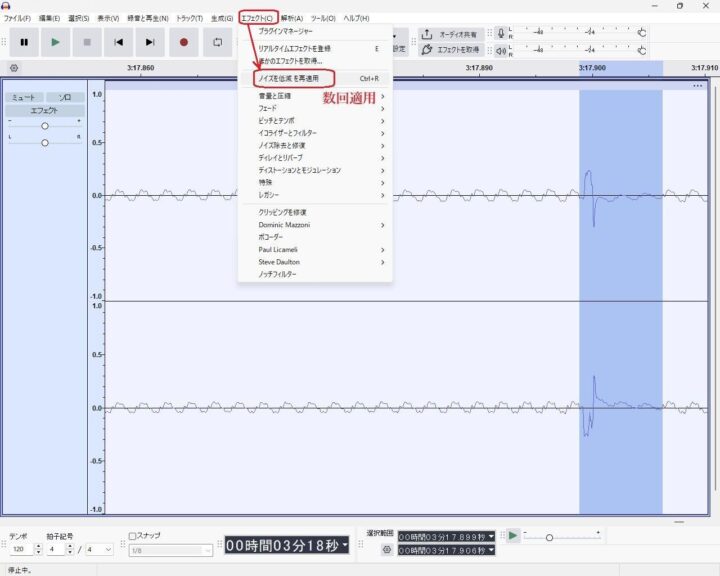 再度清掃を行えば消えそうですが再録音するのも面倒なのでfreeソフトの”Audacity”を使用して