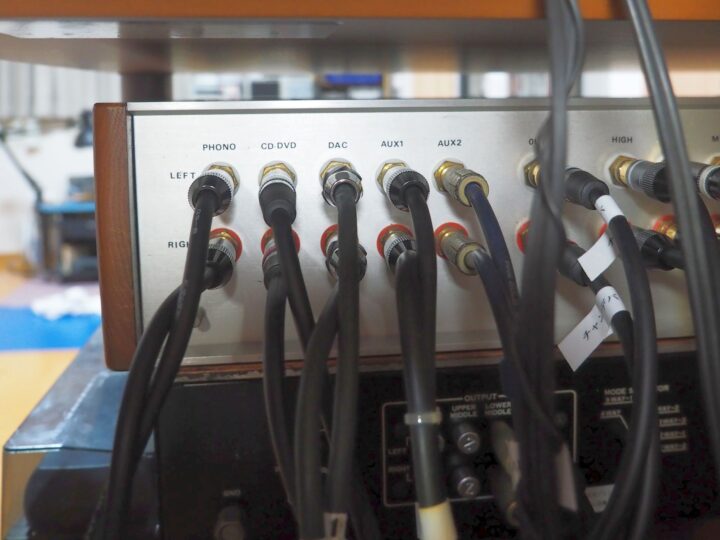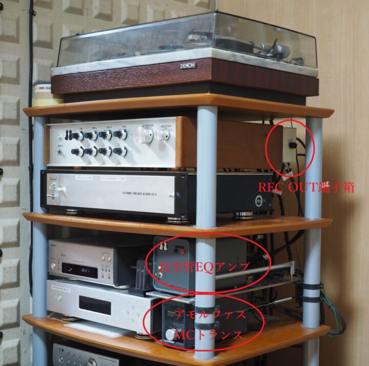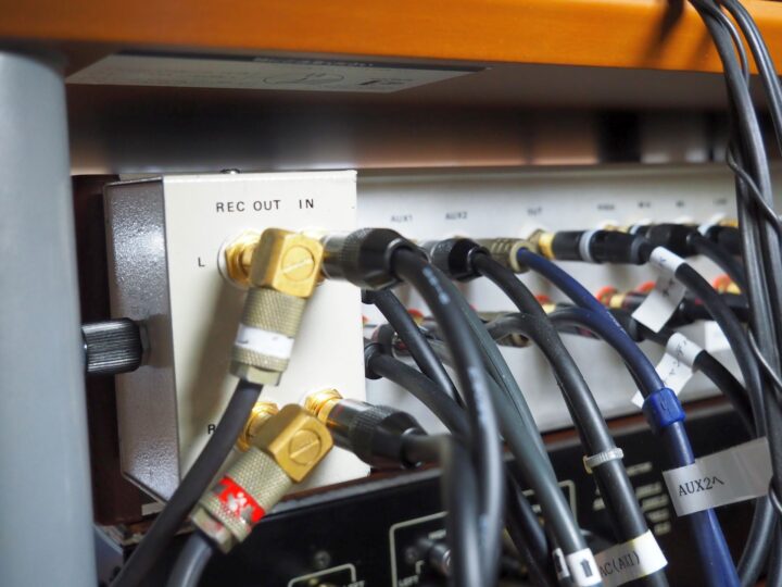 面倒ですが録音のたびに背面のPHONO端子を外して繋ぎ替えを行っています。