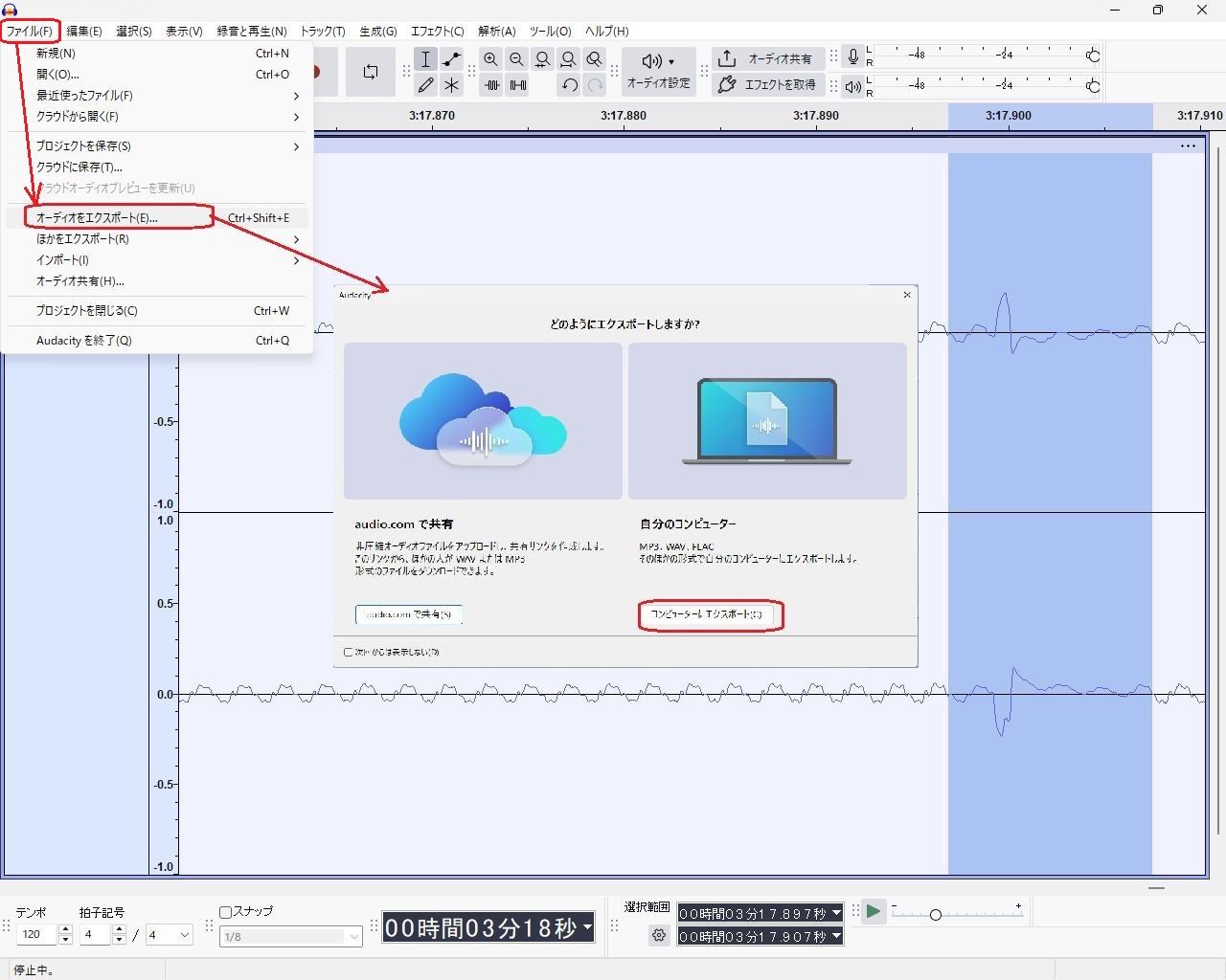 再度清掃を行えば消えそうですが再録音するのも面倒なのでfreeソフトの”Audacity”を使用して