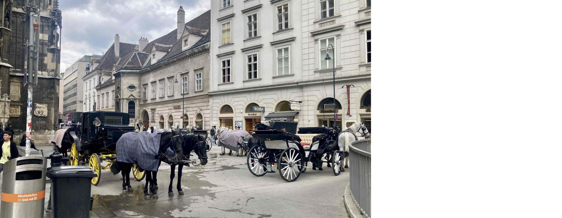 そして、ウィーンの楽しみはやっぱり夜ですね。天候に左右されないのもありがたいです。フォルクスオーパーでのオペラ”カルメン”観劇に向かいました。フォルクスオーパーはウィーンの中心地からは少し離れた場所にあります。まずはウィーンの中心地であるシュテファン大聖堂前に出てから、地下鉄に乗って向かいます。シュテファン大聖堂の裏手には、観光巡回用の馬車が何台も待機していますが、一度も乗ったことはありません。馬車に乗って回るのは、どうも気恥ずかしいです。