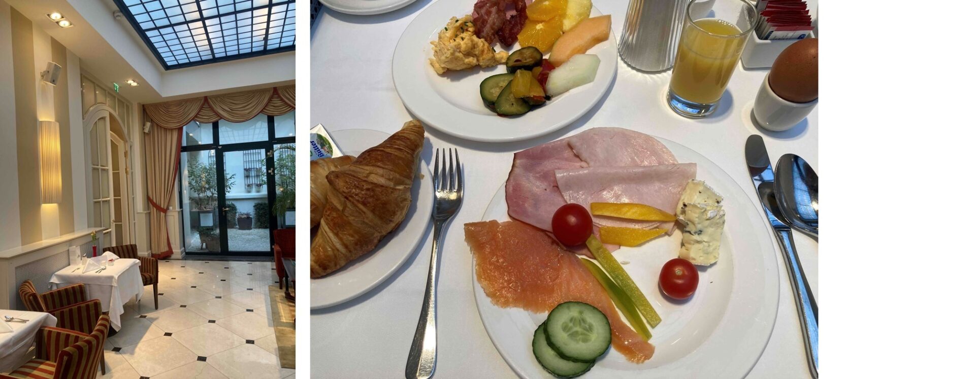 食べ物の話が続いてしまいますが、最後の3日間の宿泊先であるカイザーホフウィーンを選んだ理由は、「朝食」にあります。バイキングなのは普通ですが、食材・品揃え・サービス・雰囲気ともに最高ランクだからです。ケチケチ精神からは朝食のバイキング時に、これでもかというくらい腹に詰め込んでおいて、遅めの昼夕を兼ねた外食と、コンサート後に軽い夜食とすることで元が取れます。