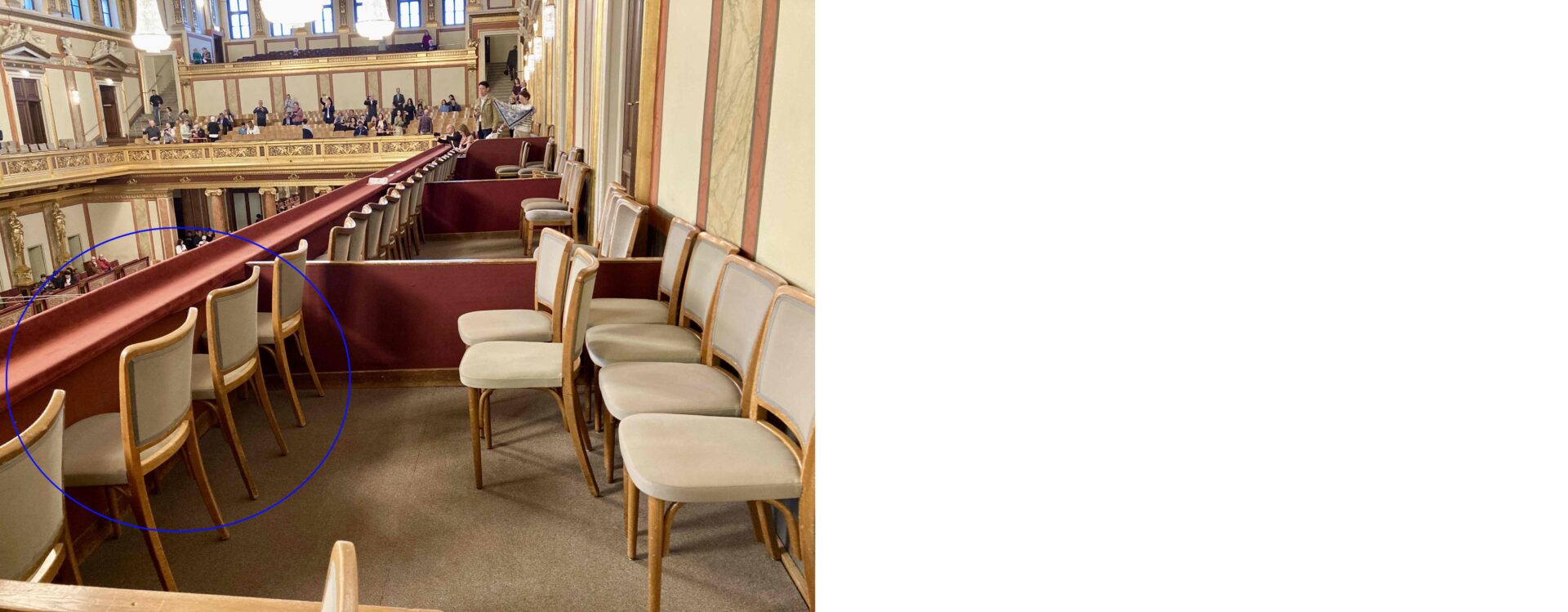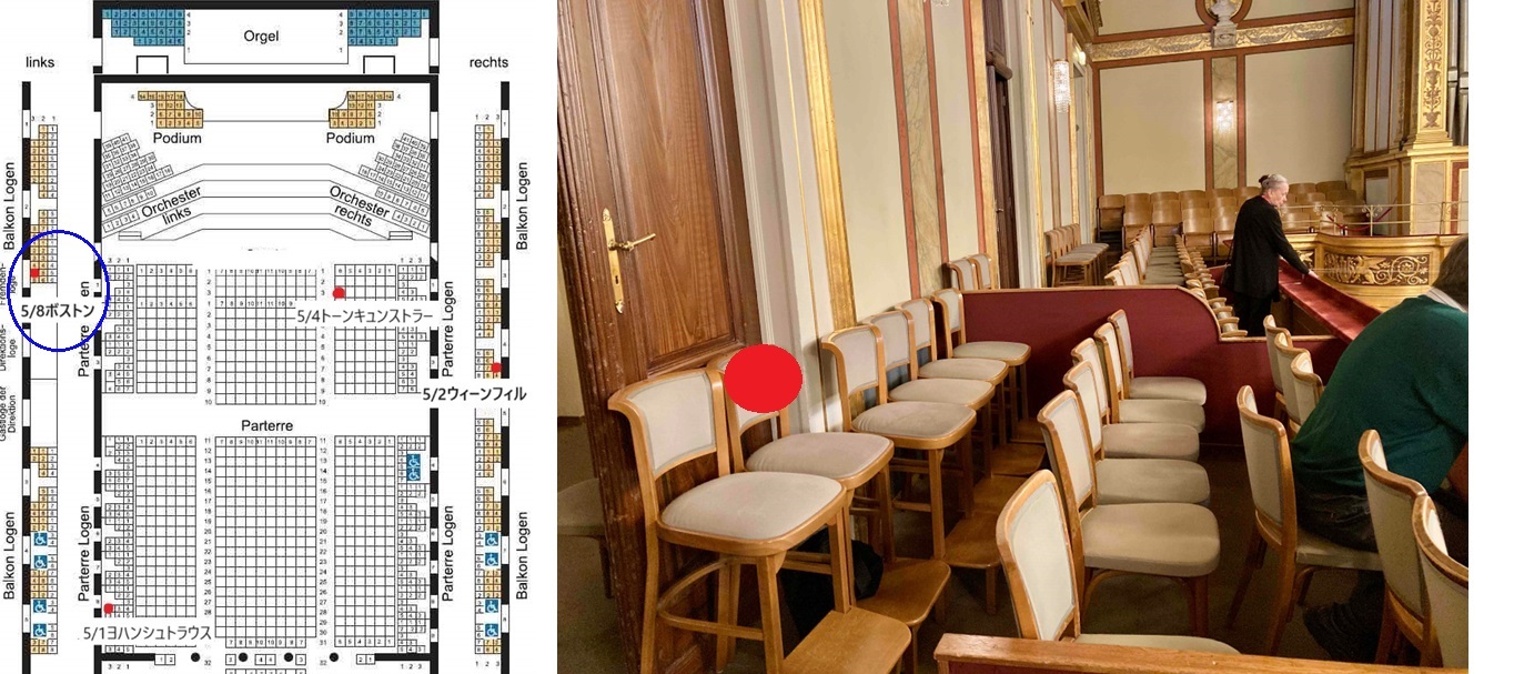 選んだ座席位置は、2階席左バルコニー ステージ3列 3番扉です。この位置を選んだ理由は、隣が招待席となっていて、招待客がいない場合は2階バルコニー最前列の絶好のポジションで聴くことが出来ると踏んだからです。(これまでに何度か、そのような光景を見てきました。)ところが、そんな思い通りにはことは運びませんでした。