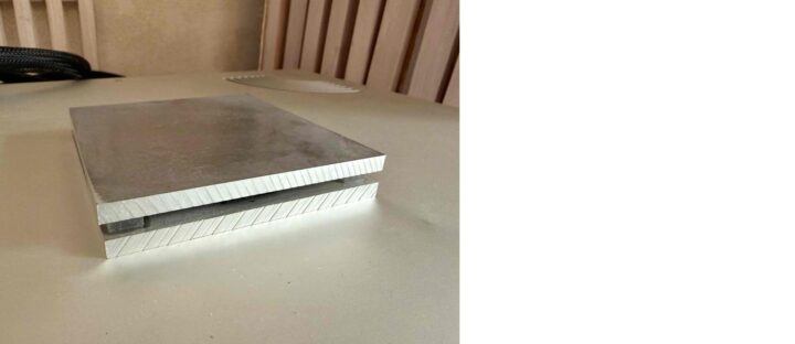 もともとAMPの天板の振動抑制用として、アルミ板をアルファゲルで挟み込んだものをダイナミックダンパーとして活用していました。これをそのままUSB DACの置台として活用しました。重力方向の振動は最小とし、回転方向の変位で振動を逃がす方式です。さらに、内部の素子が取り付けられている底板の振動を抑え込みます。ちょうど、ウェルフロート・バベルと同様な構造となるんですね。
