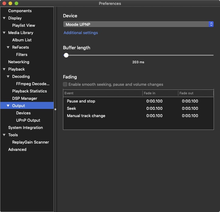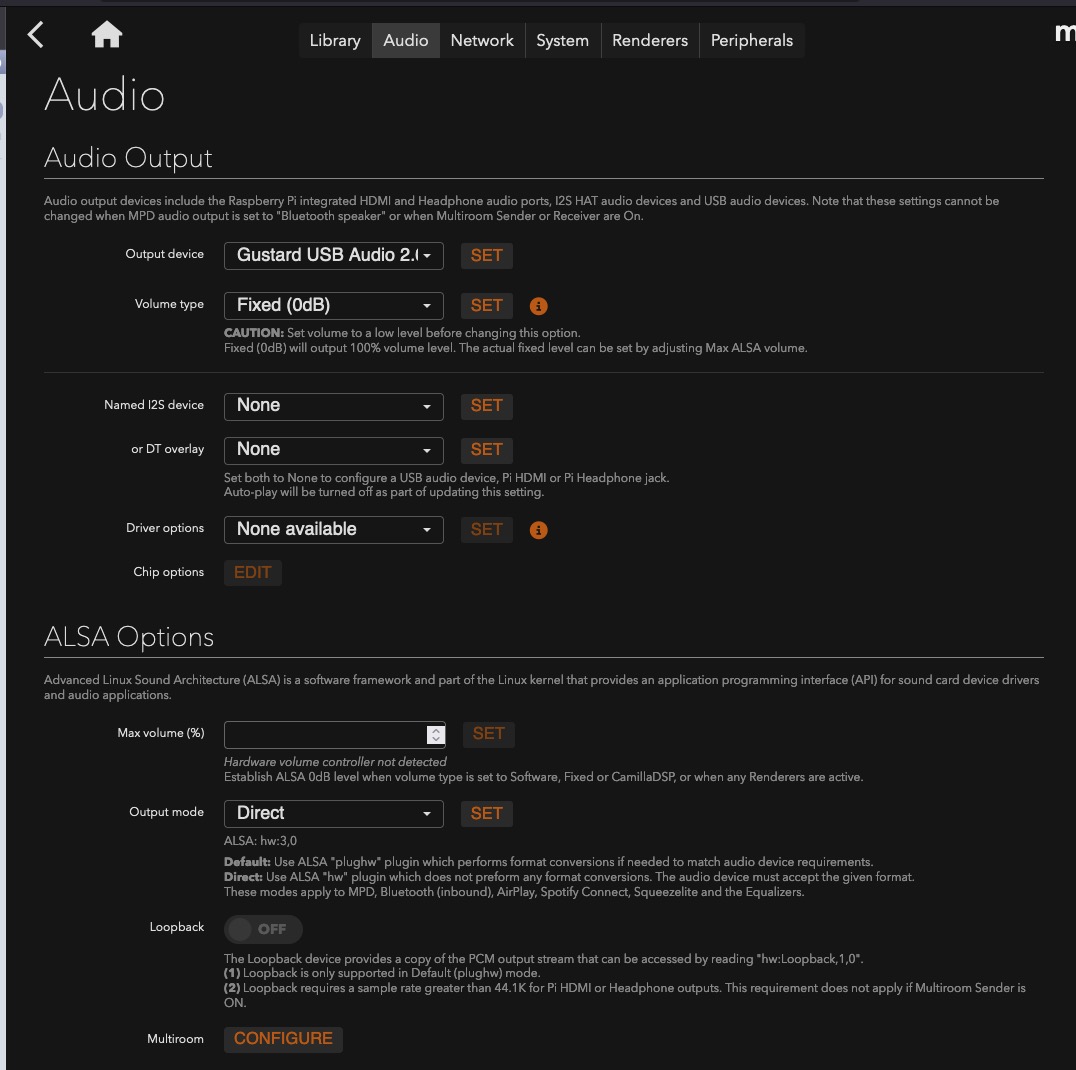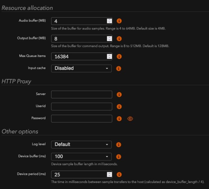 MoOde Audioは多様なバッファ調整ができるため、すべてレイテンシー最小状態にしています。バッファ量で音質変化します。