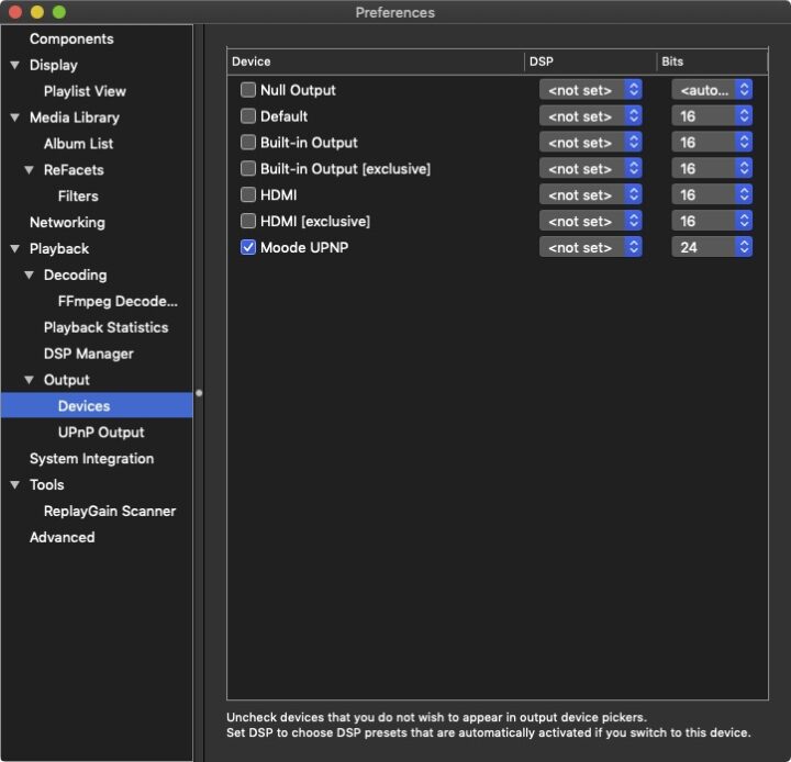 デバイスもMoode UPNP 24bitだけ選んでいます。