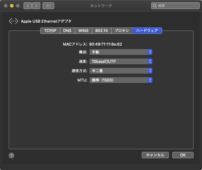 USB2.0 LANアダプターは最低速度の最低負荷に設定。