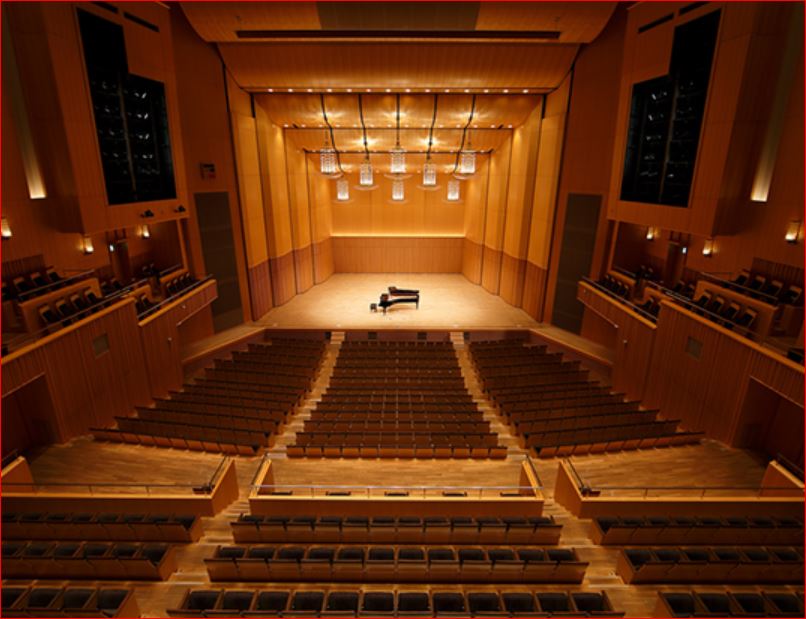 残響値 音響反射板あり:2.0秒/なし:1.4秒(空席時 500Hz)
