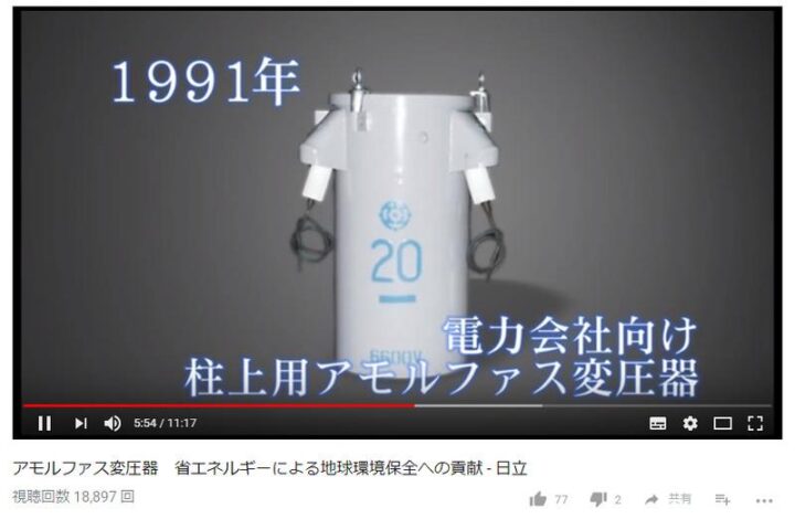 余談ですが、省エネが期待されるアモルファスコアの柱上トランス。