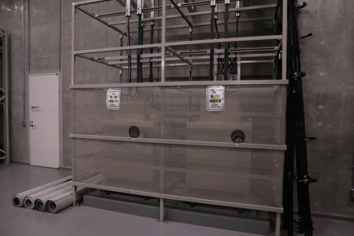 奈落に設置された音響電源用ノイズカットトランス。近年ビル内の制御システムは、高周波を使った技術が一般的。音響側が影響を受けないよう、電源にも自らを守る対策は必須。
