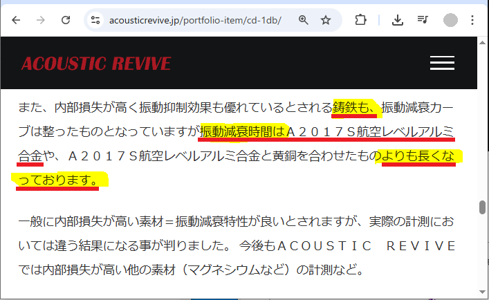 URLはhttps://acousticrevive.jp/portfolio-item/cd-1db/