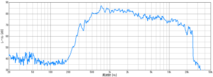 本スピーカーシステムの総合周波数特性(マイク距離60cm)は、