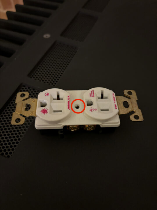特に2連口壁コンセントは、コンセント中央のネジ穴を使わないと音質的に不利になってしまうそうで↓