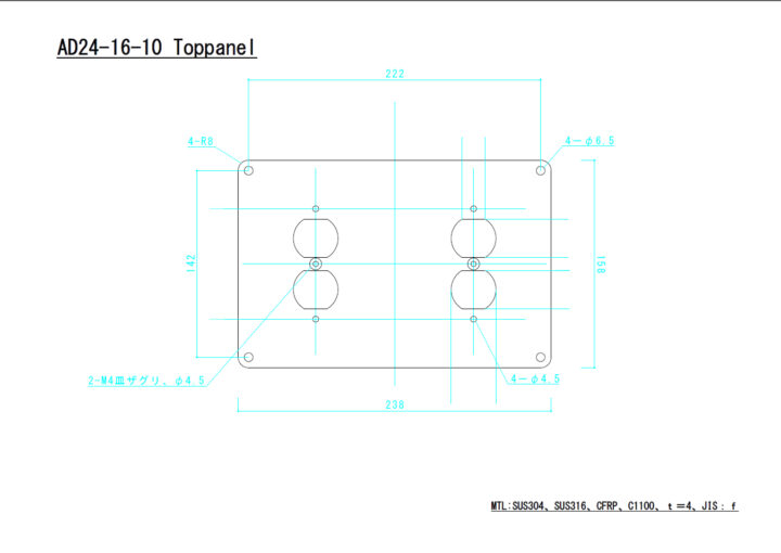上の私の設計図では中央の穴が開けてありますが、市販品は穴が開いていないのがほとんどです↓