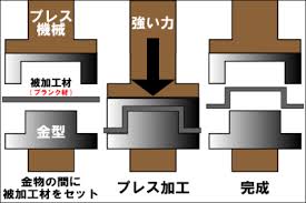 部品の大きさ、または、厚みがそれほどない(3mmくらいが限界)なら、鋳造金型より少し安価なプレス金型↓