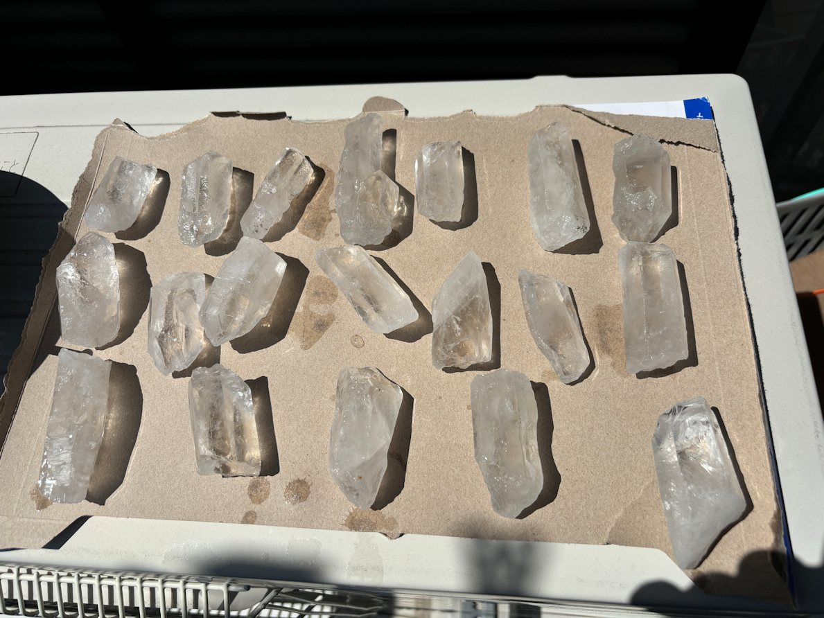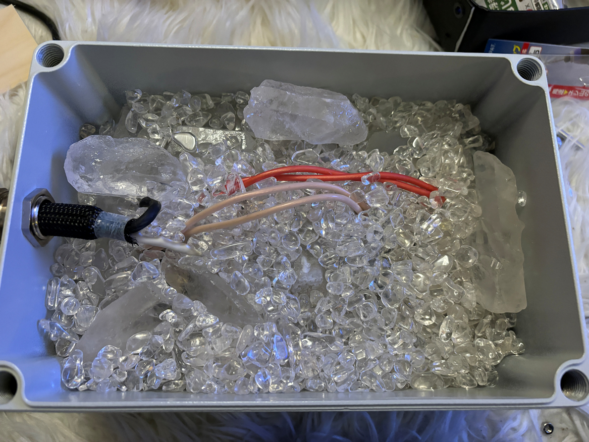 今日、ブラジル産の水晶が届き、汚れがあったので洗浄して天日干し後に電源ボックスに追加挿入しました↓