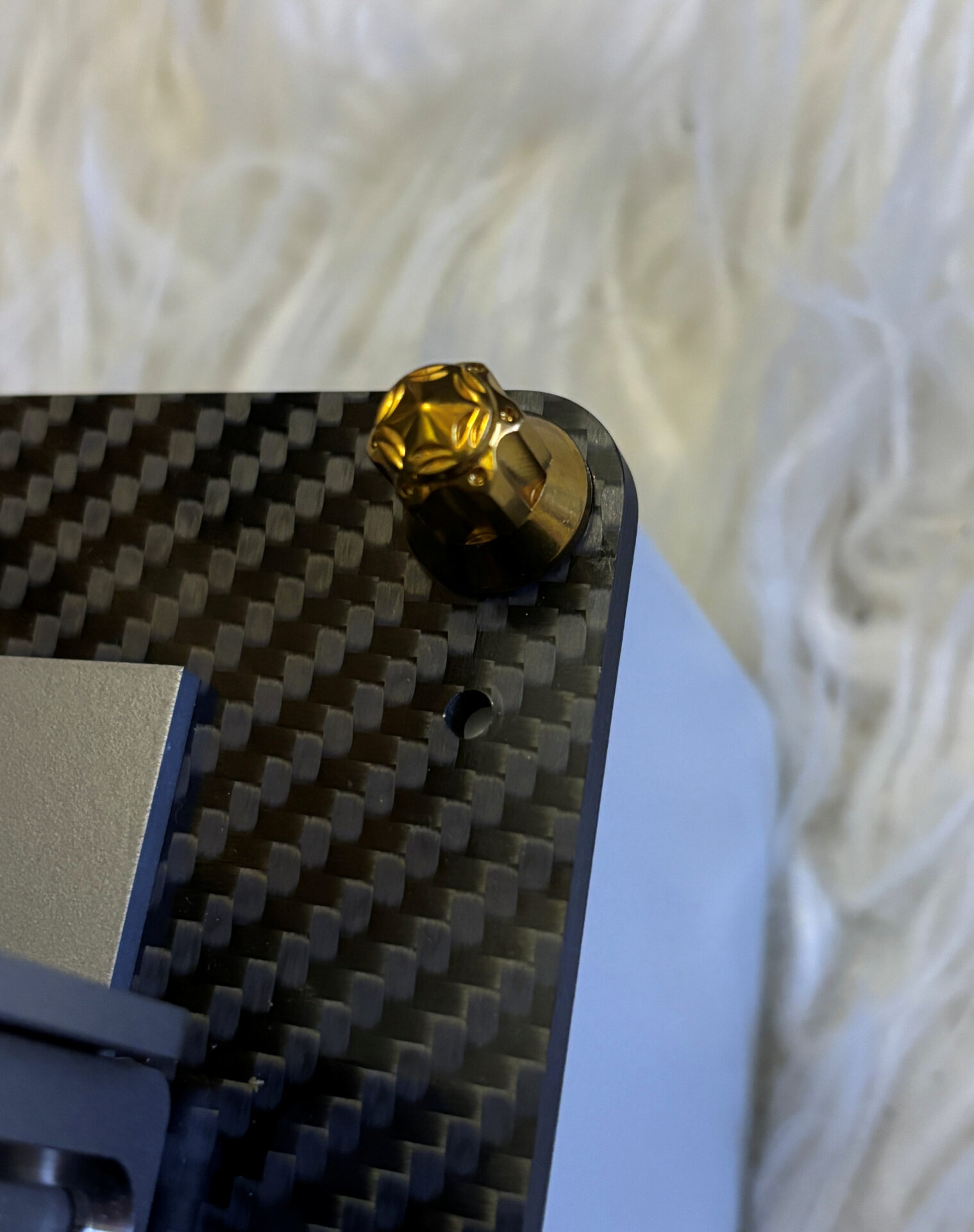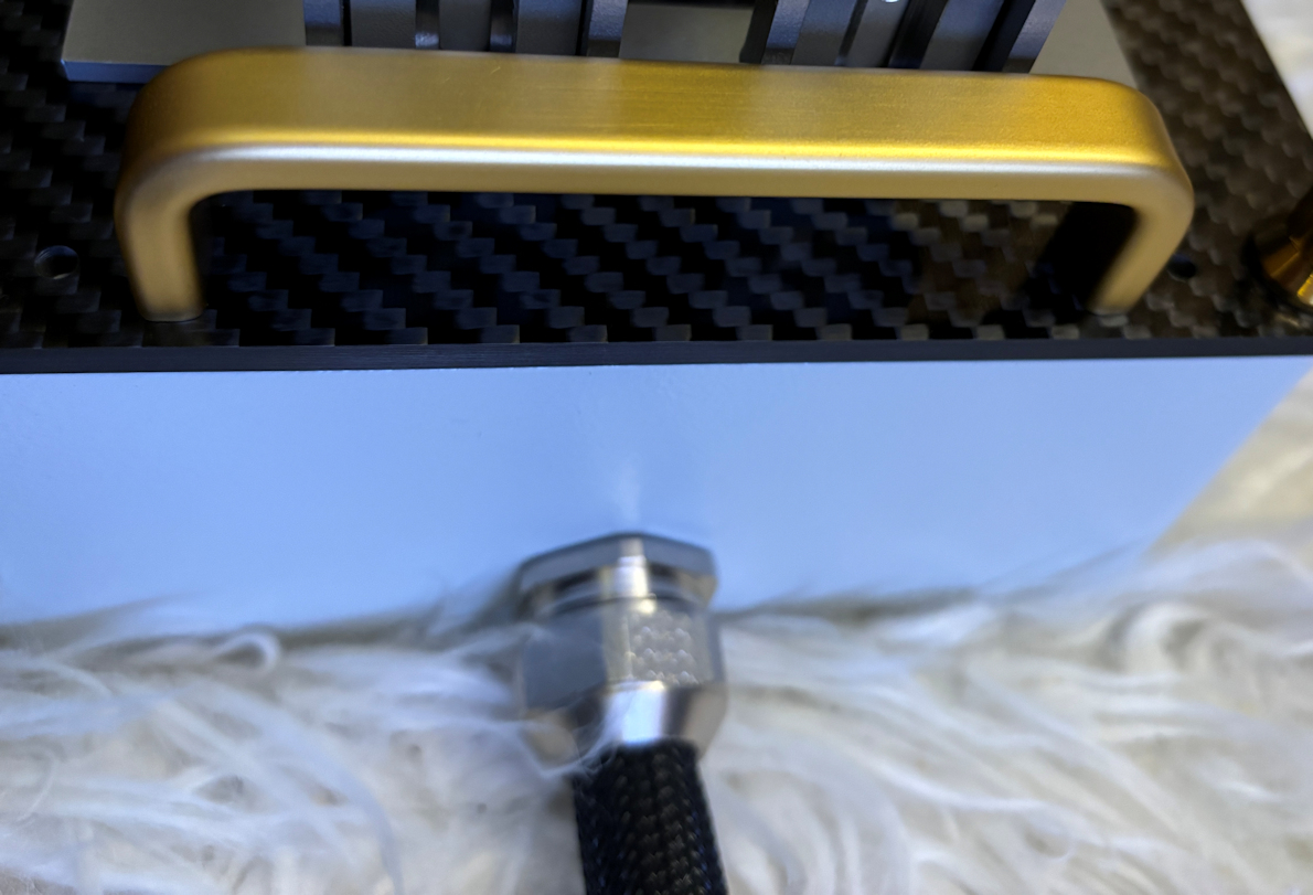 カーボン・パネル付きアルミダイキャスト電源ボックスですが、これを使うと音質がパワフル?というか、スピーカーが良く歌っている?的な音になります。