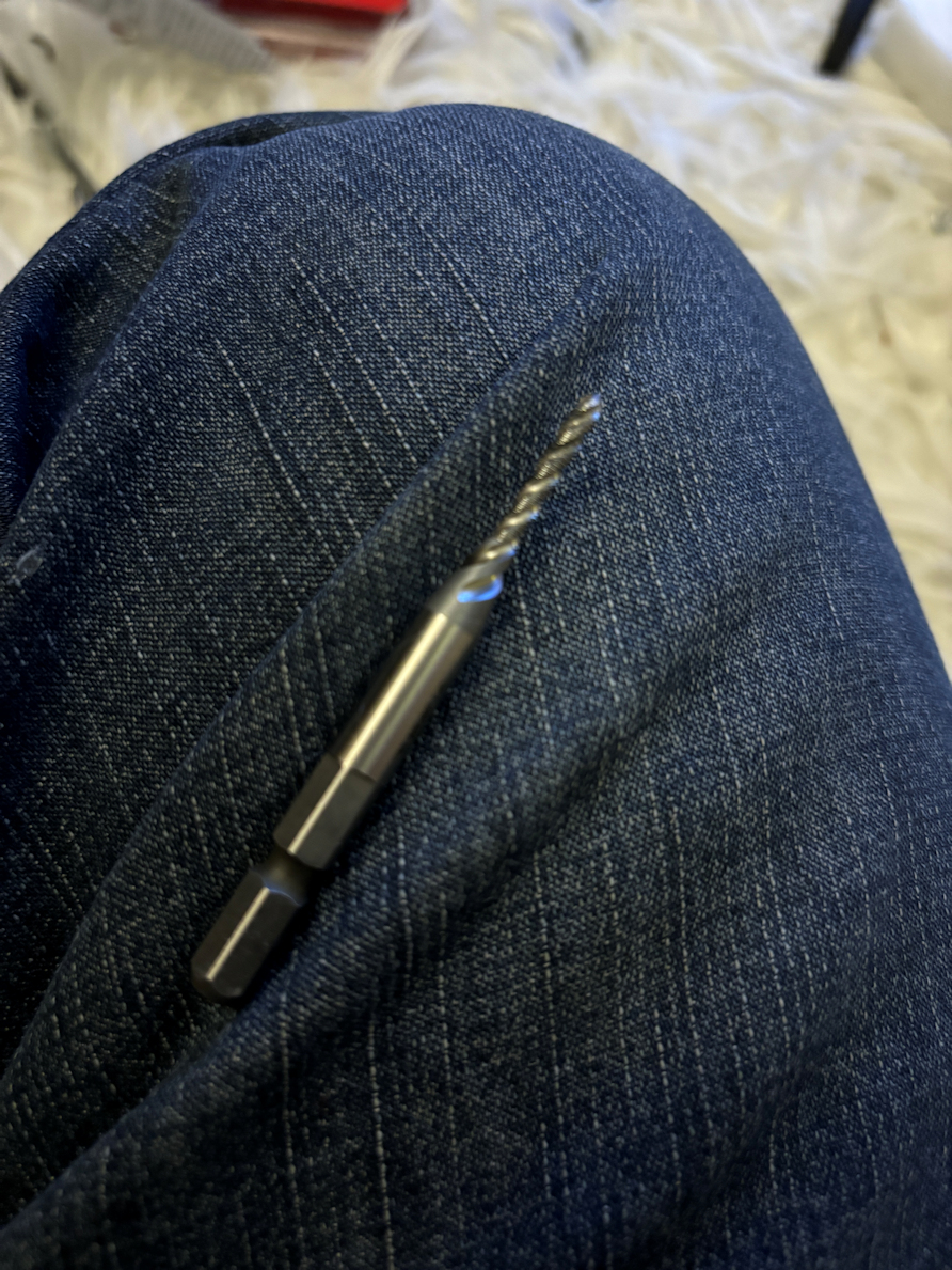 穴を開けただけではミリネジは入らないので、タップビットでネジ穴を掘ります↓