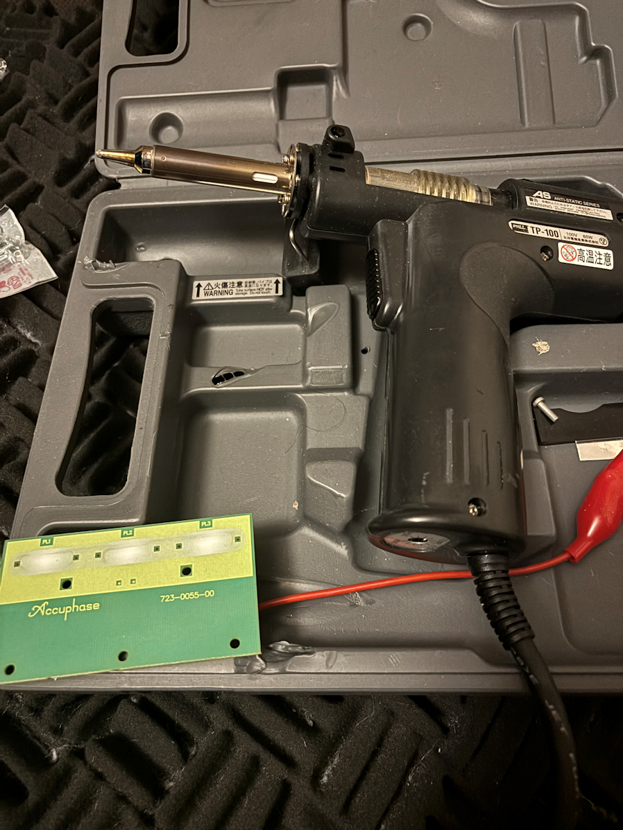 アキュフェーズの基板は部品取付穴がリード径の結構ギリギリなので、ソルダーサクションガンあった方が便利です。