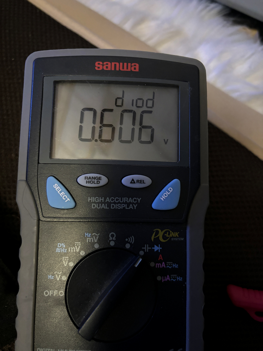 今回は電源トランスのタップ出力がAC24Vなので、逆流防止ダイオードとCRDを直列接続にしました。