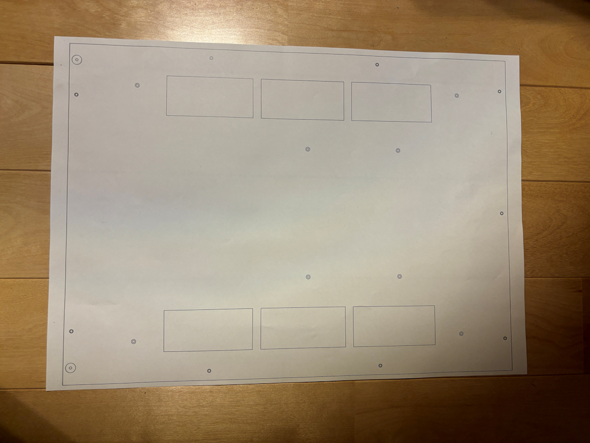 なので、2D-CADからDXFファイルにしたモノをAdobe Illustratorに変換して、紙に印刷して型紙にします↓