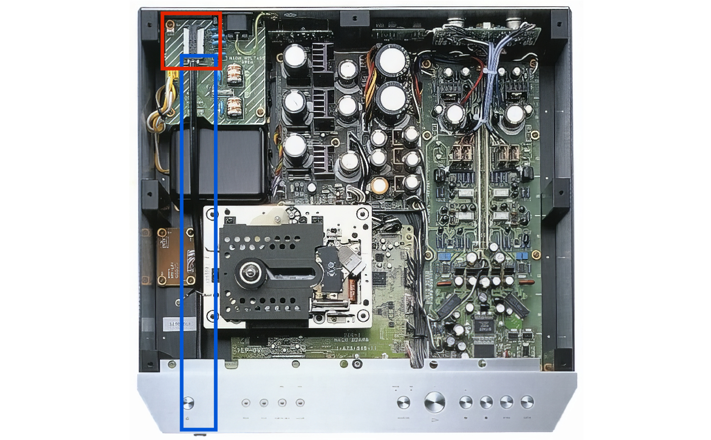 余談ですが、ソニーの初代SACDプレーヤーのSCD-1のフロントパネルの電源ボタンから樹脂製シャフトで延長してますね↓