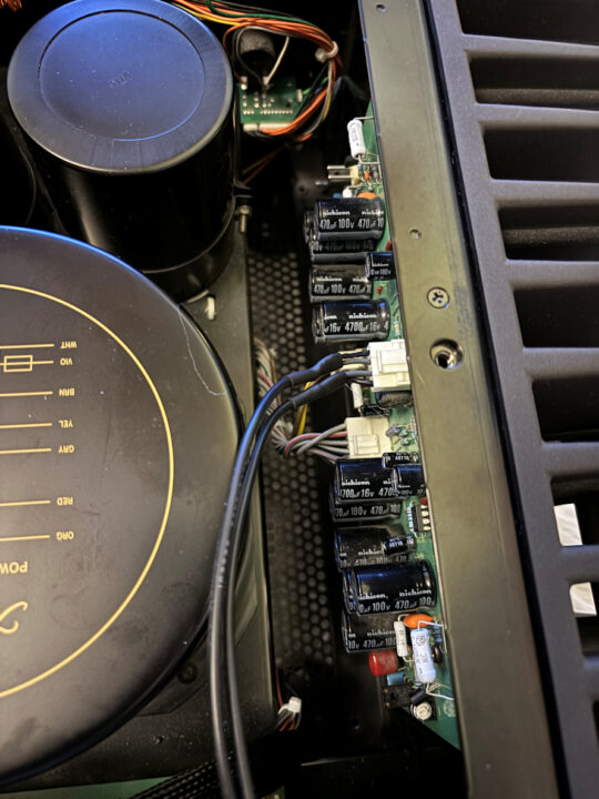 これは、やはりハーネス(特に音声系)がトランスに接触するのは良くないと考え、スピーカー出力のハーネスを急遽、リーケージフラックス対策を行いました。