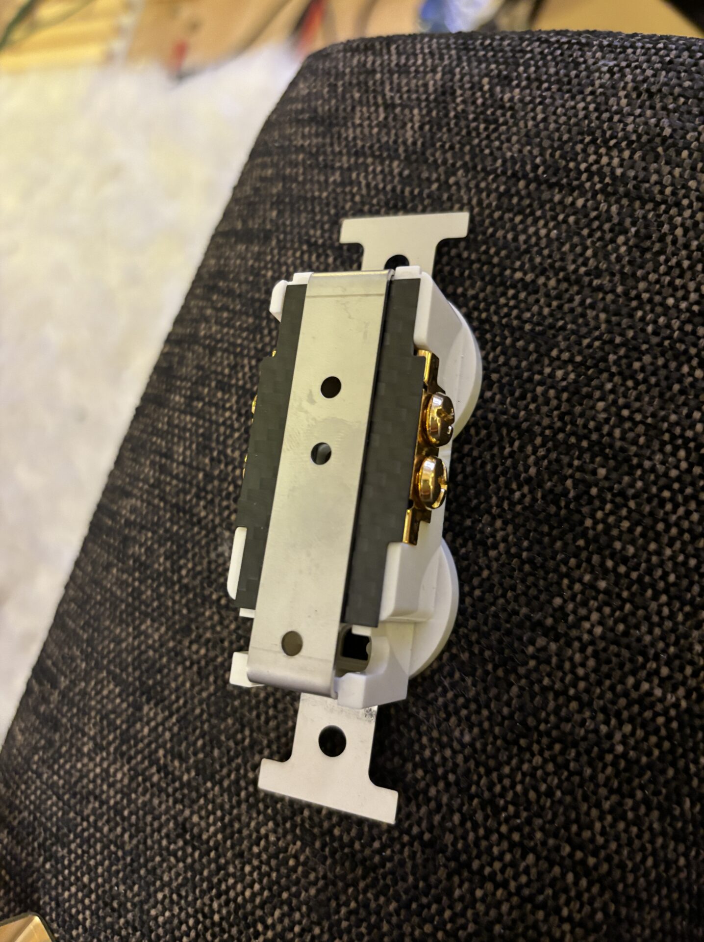 同じコンセントボックスに載せて、ブラケットの素材の違いで音質が変わるか検証します。