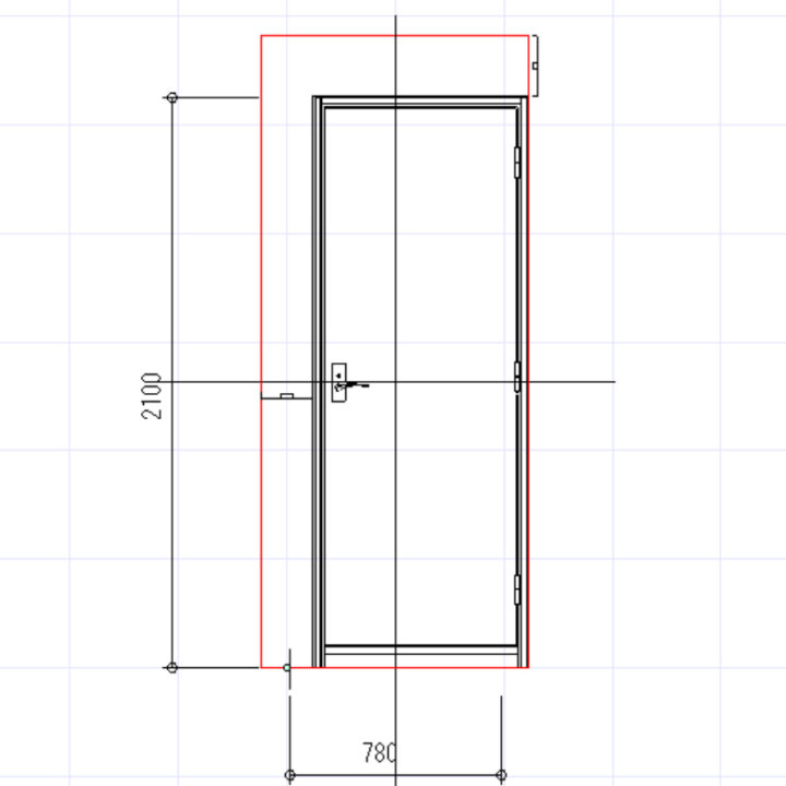 CADで確認すると、上が222mm、ドア枠幅が192mmの大きさの違いがあります↓