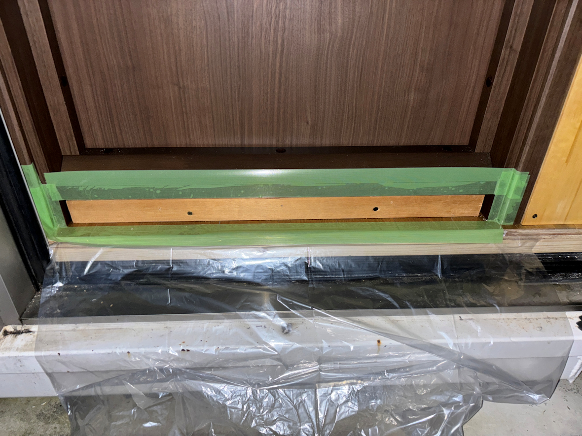 防音ドアと玄関ドアを埋める枠内にコンクリートを入れました。