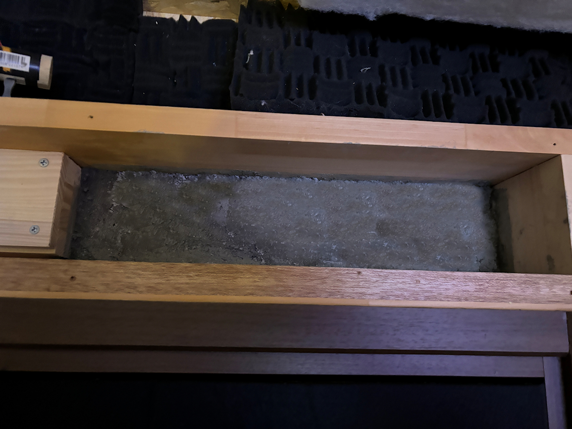 今回打設したコンクリートは、概ね100kgくらいになりますが、「防音は重量で止める」のセオリーを更に進めていますね。