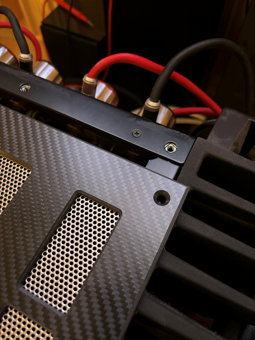 上にパワーアンプが載ってないうちに、低域側に使っているパワーアンプの天板をカーボン化します。