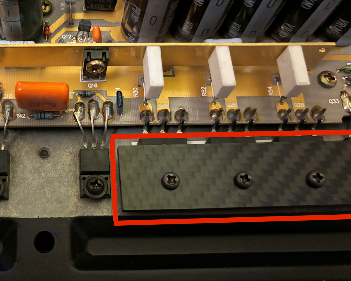以前、音声回路にカーボンを直に使うと効き過ぎる可能性がある予想をしましたが、ダメだったら外せば良いだけの事なので取り付けてみました↓