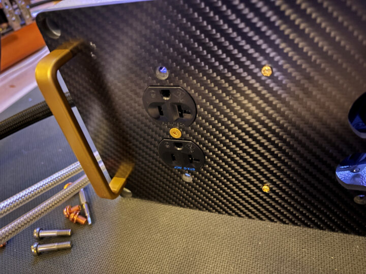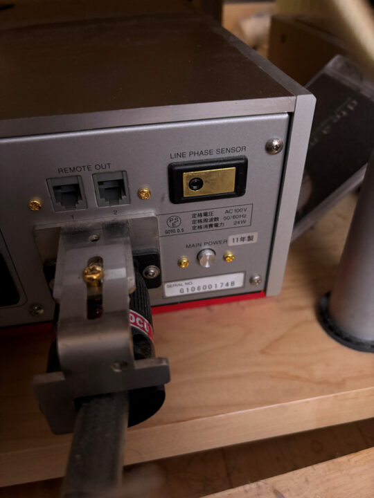 ラックスマンの機材の場合、電源入力付近に純正で付けられています↓