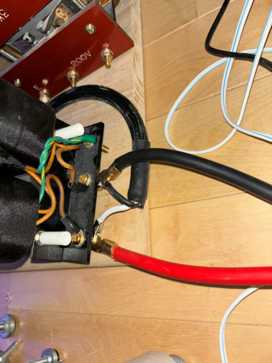 今回、既存絶縁トランス(1kW)の端子を利用して並列接続しています↓