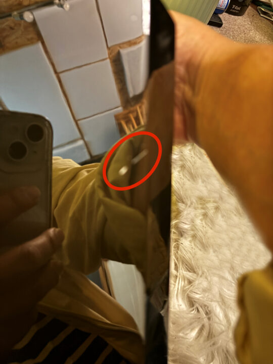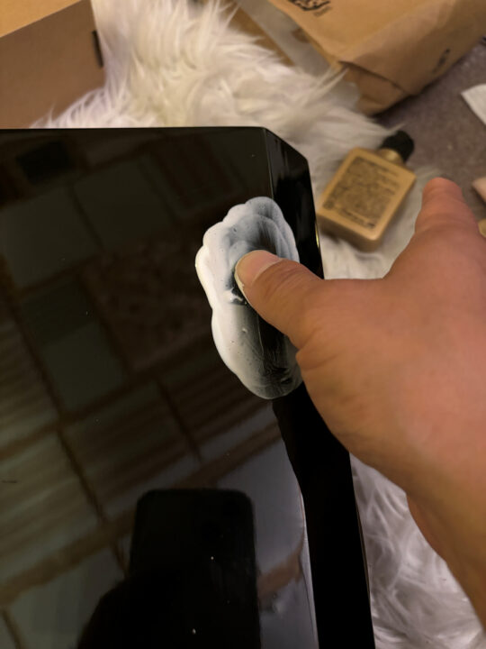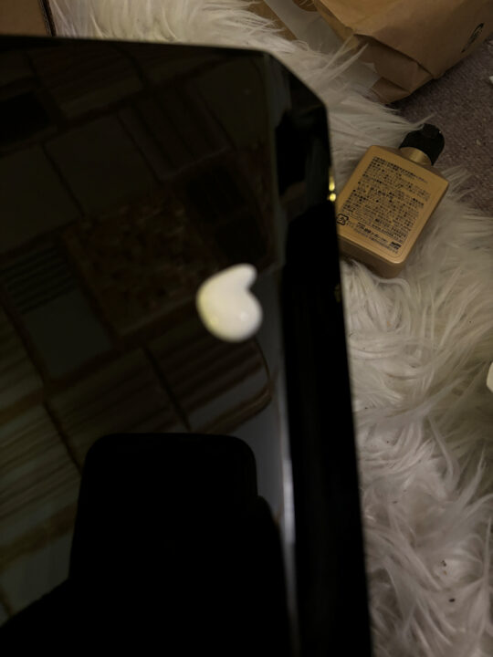 キズの部位に少量乗せます(鏡面なのでピントが合いません)↓