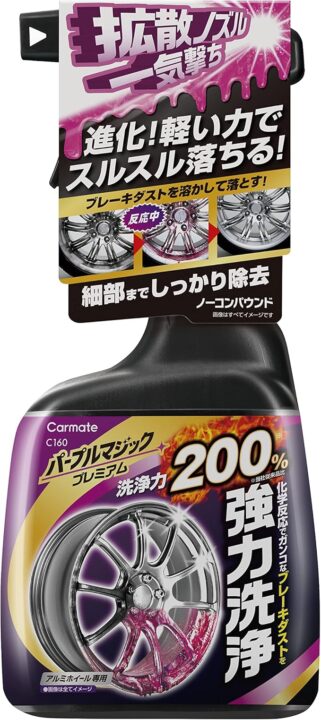 ホームセンターとかに錆取りクリーナーとかもありますが、私がこの手の対策として使用するのが、カー用品の「ホイールクリーナー(鉄粉対策仕様)」↓