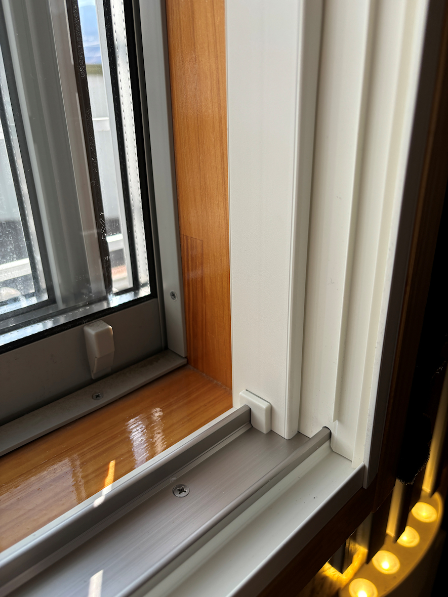 DR35以下の取り付けは採寸さえキッチリしていれば、サッシ窓枠のインパクト打ち込み、障子の嵌め込みで終わりですが、AGCの場合はさらに障子の傾斜角調整、クレセント錠の嵌め合い調整があります。
