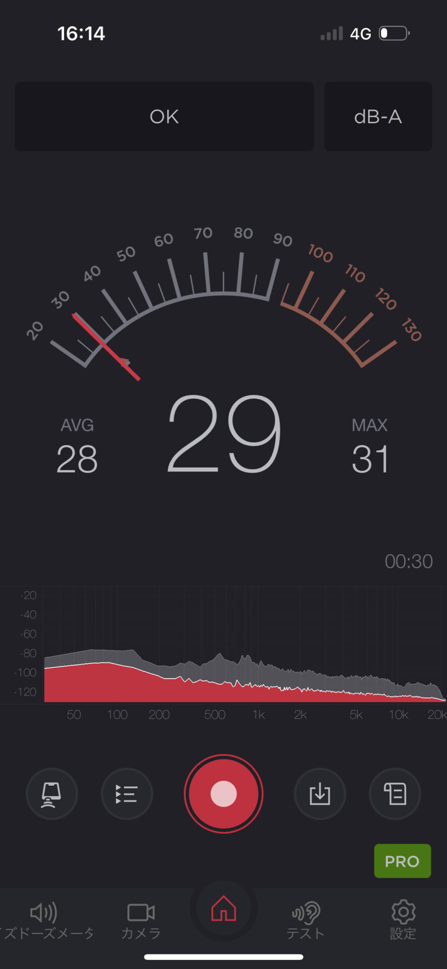 iPhoneの簡易騒音計ですが、測定してみたらこんな感じです↓