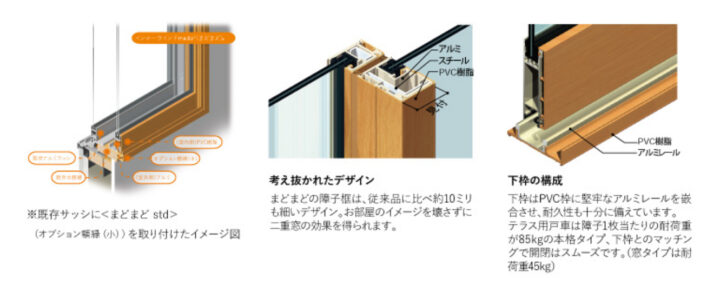 窓枠がAGCの「まどまどplus」で、ガラスが同、「マイミュート」です。