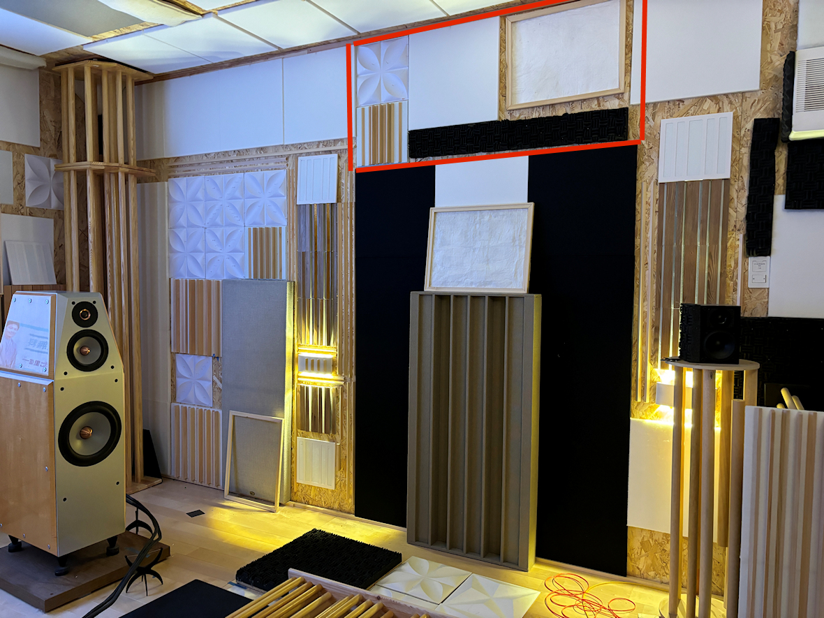 以前は、某尼で購入した拡散パネルやら吸音パネルやらを一貫性もなくランダム(テキトーともいうw)に貼り付けていましたが↓