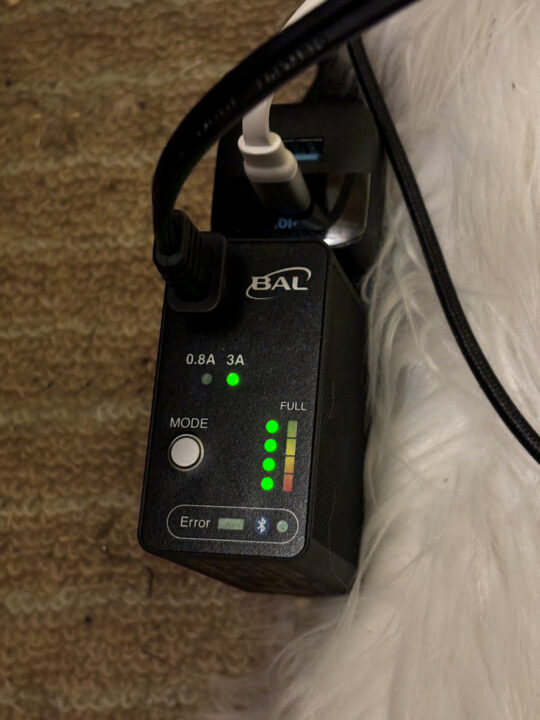 もし、電圧がちょっと高かったら、並列に他の機材を複数接続して電源を入れればガツンと下がるので、それでもOK。