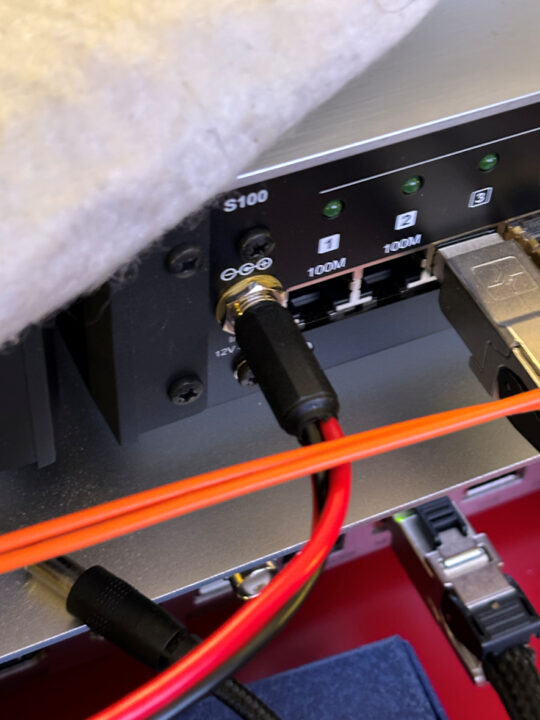 今回の並列接続では新規にPC-TrippleCのケーブルで作成し、DELA N100側に接続、旧作ケーブルはスイッチングハブに繋げました↓