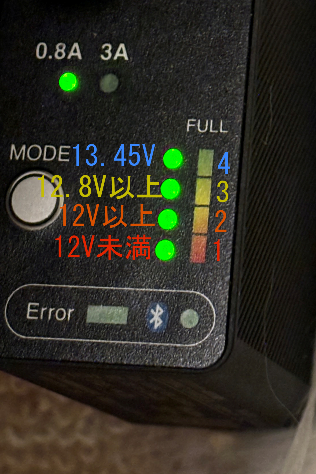 3点灯: 12.8V以上