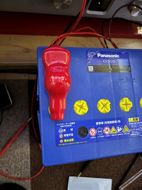 充電時や不在時にはショート事故防止で安全のため、ゴムカバーをプラス端子側だけ取り付けます↓