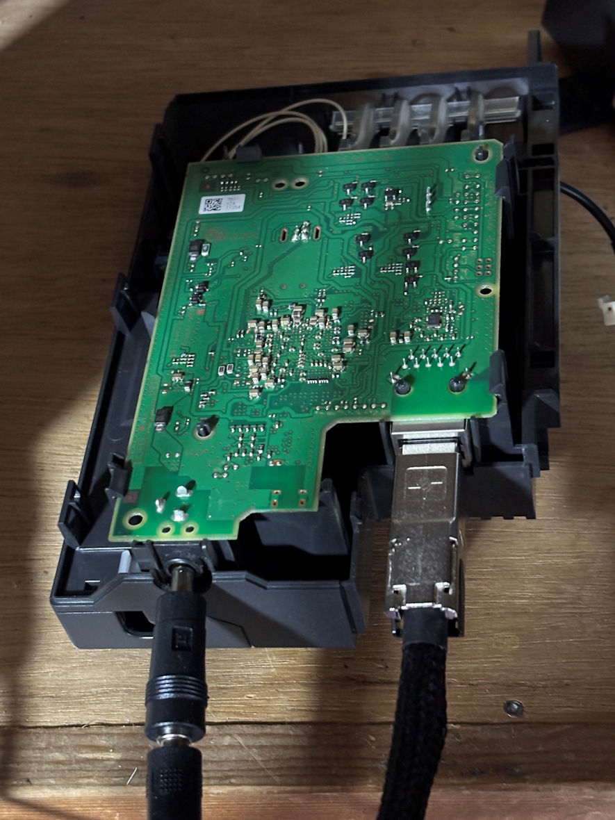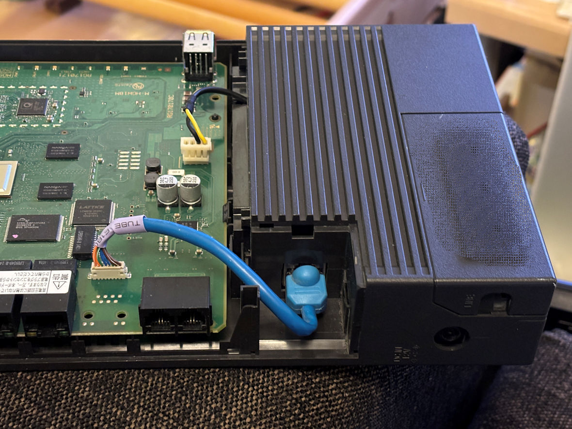 買い取り機ならば物理的に基盤を引っこ抜いても良いですが、レンタル機ならば、フロントカバーを開けて下段電源部からLANハブへの供給電源コネクターを抜き、LANハブの無駄なEMIノイズを防止すると更に良い結果になるでしょう。