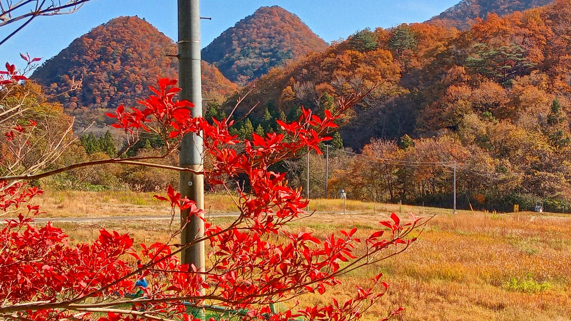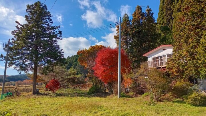 東北山間部の我が家の周りも、いつのまにか紅葉も進んですっかり秋の風情です。休耕田にイノシシやクマが出てくるため、クマのヌイグルミに夜間照明を照らしてますが気休め程度の効果です。 実家の敷地の木々も真っ赤に紅葉して電柱が無粋なんですが、実家と別に自宅用に立ててもらった電柱です。 いつものように近況からご報告します。前回の「どんど晴れ」投稿の翌日、当方の不注意から左膝の「前十字靭帯」を痛めてしまい、12月中旬から入院し、痛めた靭帯の再建手術をして年を越すまで病院暮らしになる予定です。