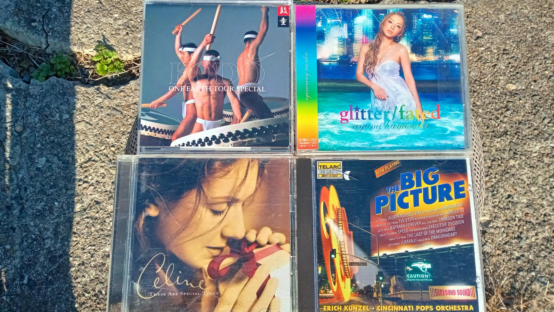 現在は不便な生活にも慣れ、昨日(11/15)は久しぶりにソアラで遠出をして登米市中田町宝江黒沼字浦45-2のラーメン屋「菅原屋」の「とりめし弁当」を買い求め、その帰りに前回も税込100円でCDを入手した宮城県遠田郡美里町北浦道祖神「リサイクル大崎」に寄り、今後の入院費用も必要なので「大人買い」は自粛し、子供買い?で400円分買い求めました。(汗) CD4枚の左上から時計まわりに、鼓動「佐渡へ~ワン・アース・ツアー スペシャル」これが何とSACDでした。浜崎あゆみ嬢の「glitter/fated」、テラーク「THE BIG PICTURE」そしてセリーヌ・ディオン「スペシャル・タイムス」の4作品です。