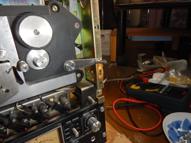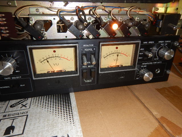 このテープでチェックしたところ、聴感的には一切違和感は有りませんでした。ただ右チャンネルからは音が出ません。原因は出力ボリューム、モニタスイッチの接触不良でした。
